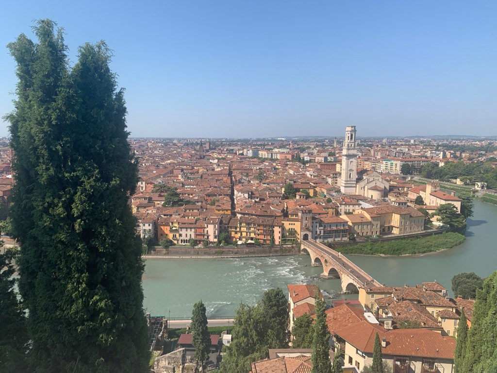 We have been back from Italy for a few days now. It was an amazing vacation. We landed in Verona and spent a few days there. We had a lot of fun walking around and exploring the city. We saw the main squares and pedestrian area on the first day, and the second day we went to Giusti Garden and then took the funicular up to Castel San Pietro. We didn’t even see the castle, we just went up there for the views.