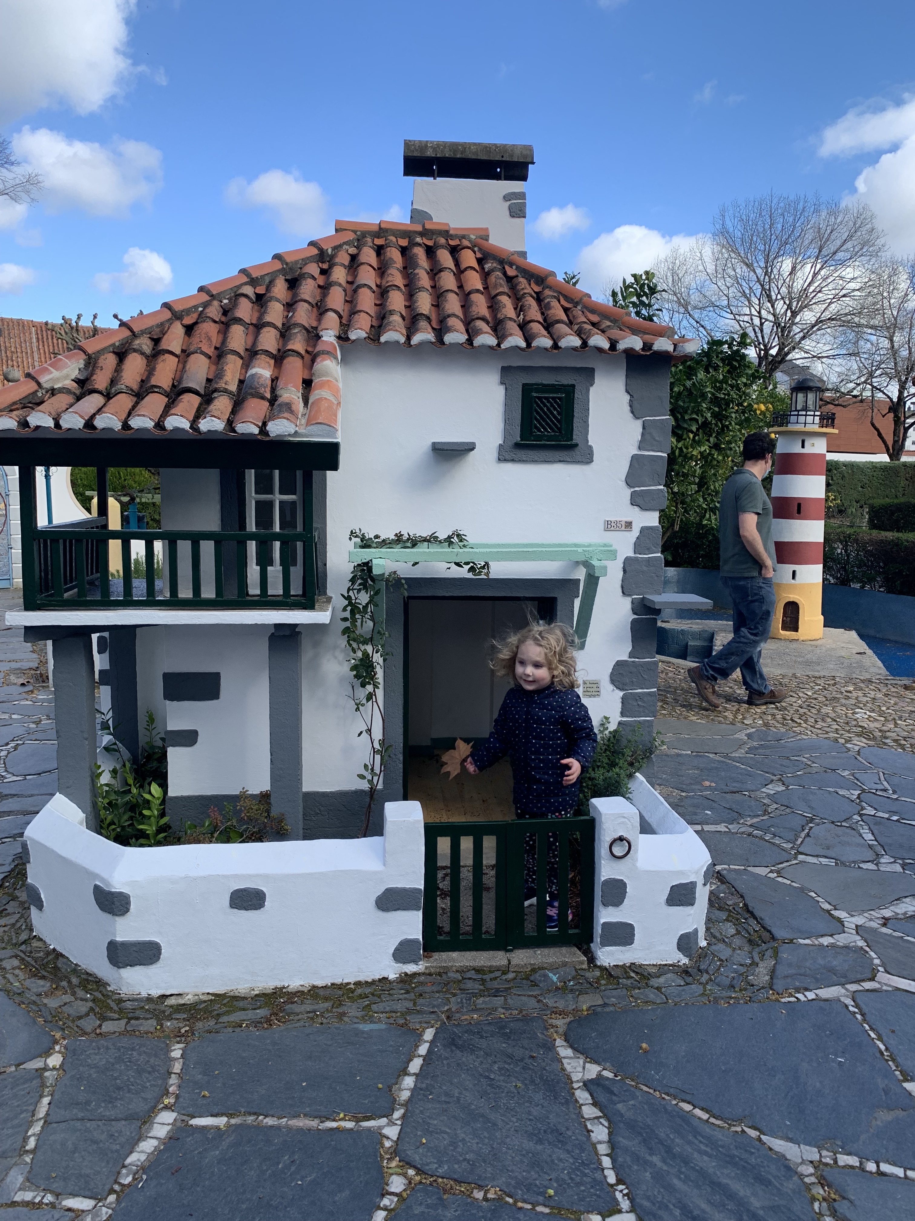 About halfway through our walk, we stumbled upon Portugal dos Pequenitos. We could see some miniature buildings and knew it was for kids, but we weren’t entirely sure what to expect. We figured we might kill an hour and then head to the exploratorio, but the place was way bigger than I thought it would be. Leo and Sofia didn’t want to leave, so we spent hours there. Luckily the weather forecast was wrong. It was windy, but no rain while we were there.