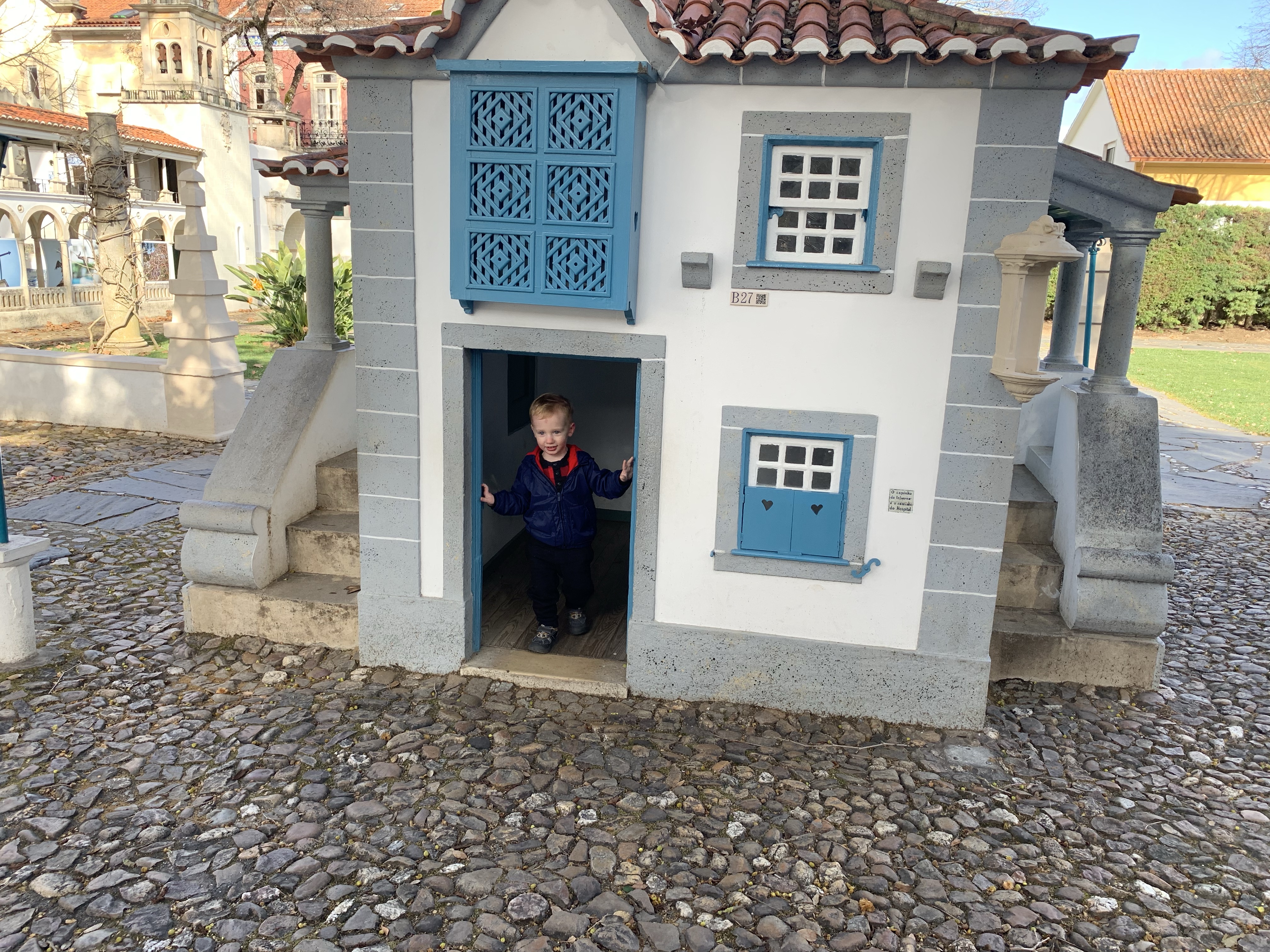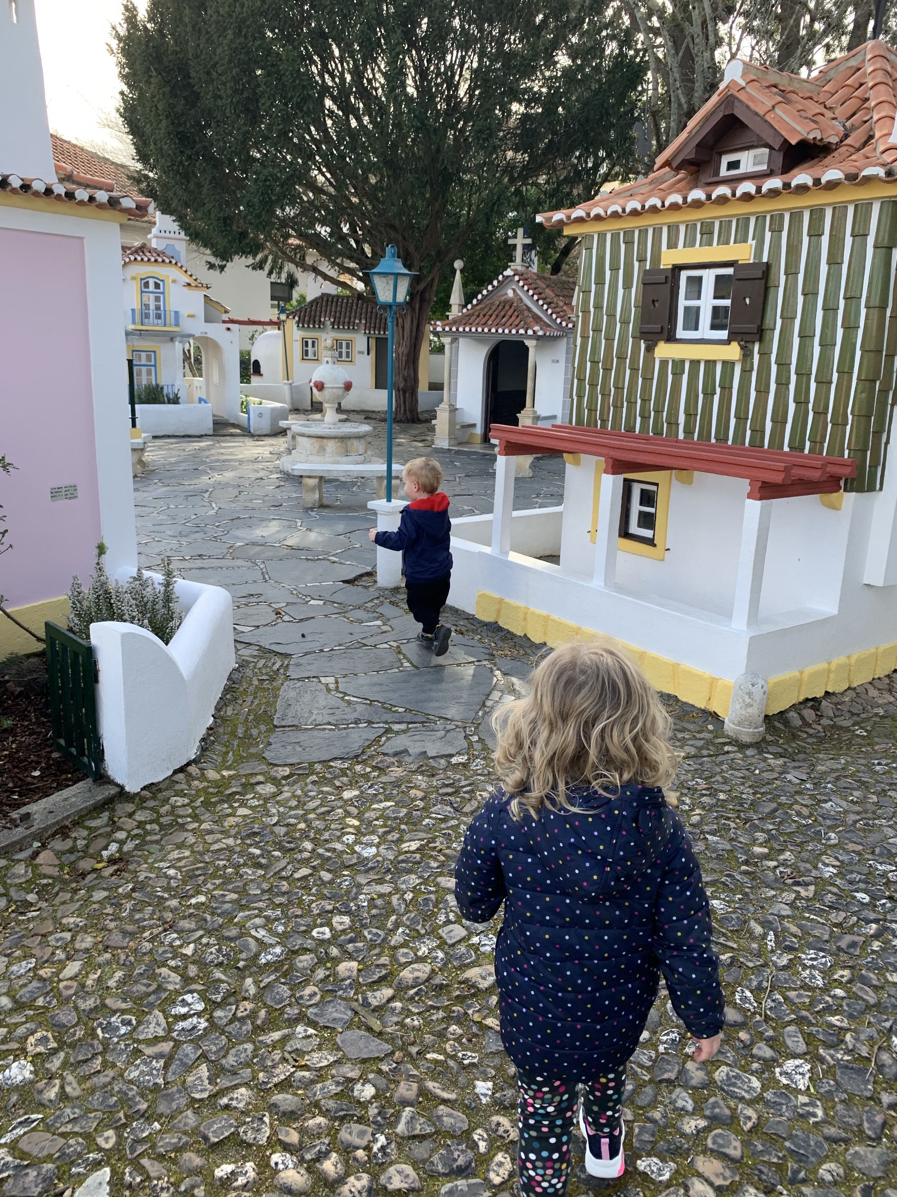Portugal dos Pequenitos must have at least a hundred buildings. Mini houses, palaces, and buildings. All of them are the perfect size for kids. Leo and Sofia had so much fun going into all of them. There was even a playground, but for once the kids didn’t care because the rest of the park was so much cooler. I’m not sure what the best age ranges would be, but it was definitely age 2 and age 3 approved. They had so much fun. It’s a little pricey, but it was worth it for us.