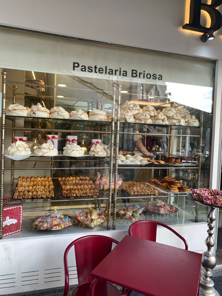 The bakery happened to be Pastelaria Briosa, which we see in all the videos. I remember watching a walking tour video of Coimbra on YouTube when we were in the states. They stopped at the bakery to show a picture of the window. I told Kyle that we would go there and I would remember the video, and I did! We tried a bunch of things. They had a chocolate cake that was amazing.